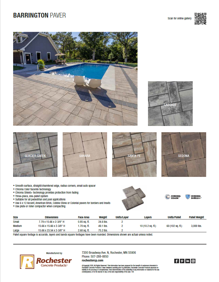 Barrington’s appeal comes from its outstanding color, smooth surface, subtle edge detail and extremely large format. Barrington’s impressive look comes from its 16 x 24” unit, which means it looks great and installs faster than any other paver system.
